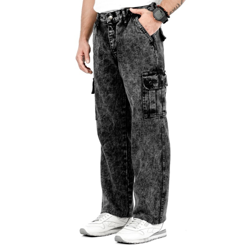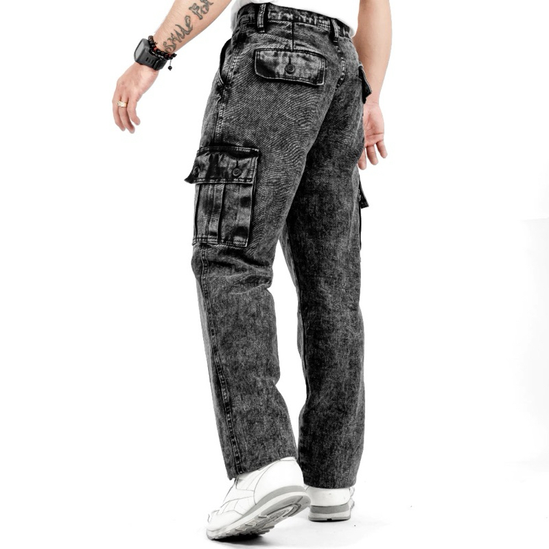 Celana Cargo Jeans Pria Premium Snow Black 12 Oz