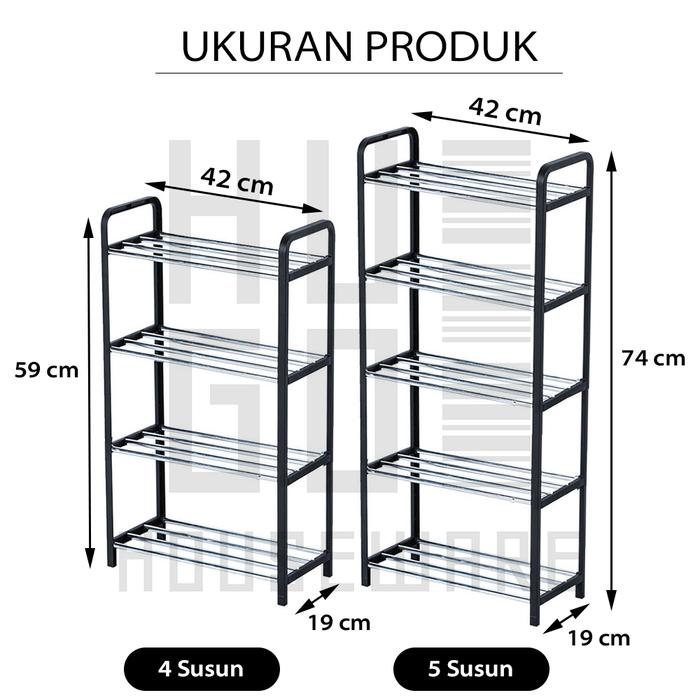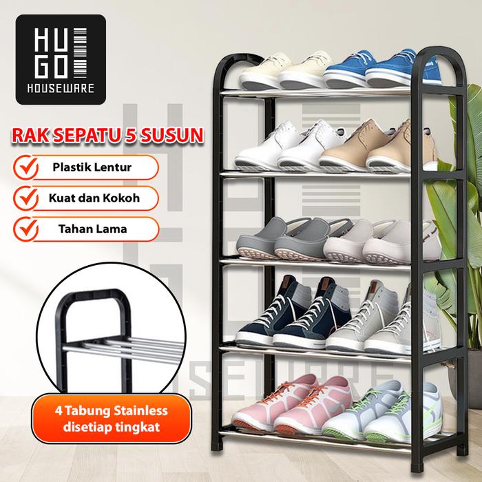 HUGO RAK SEPATU 4 DAN 5 SUSUN RTABLE SERBAGUNA TEMPAT SEPATU SANDAL - HITAM, 4 SUSUN - SS