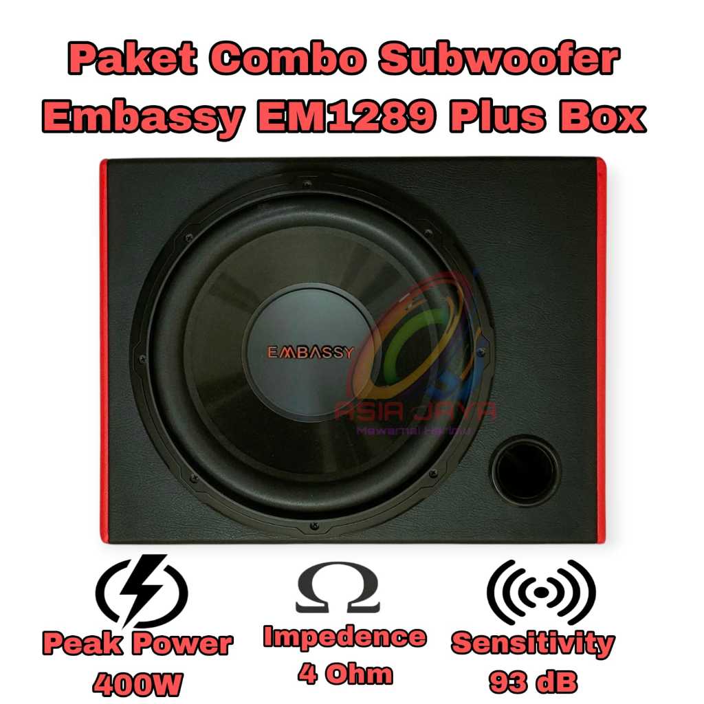 Paket Combo Speaker Subwoofer Embassy EM 1289 + Terminal Kotak Dan Corong Angin