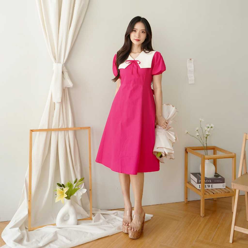 Midi Dress Wanita Aenor Cloth Norine A Line Dress Midi Premium Cotton Basic Vintage Korean Style Party Dress