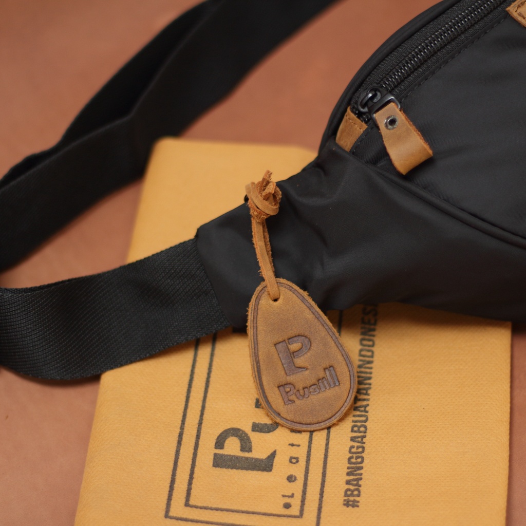 Pusiill-Waistbag Pria dan Wanita/Tas Selempang kombinasi kulit sapi Asli/ Tas Pinggang A05
