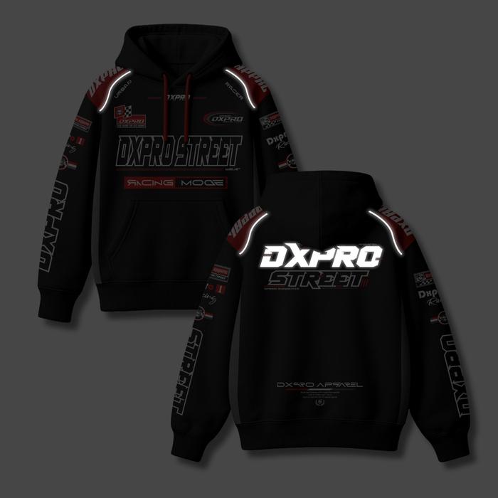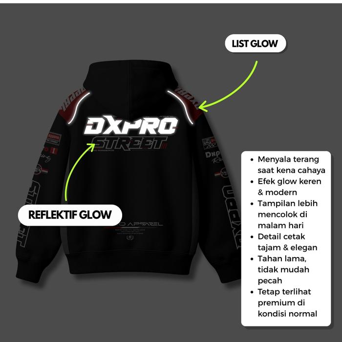 HOODIE DXPRO STREET RACER PREMIUM - Cotton Fleece 330gsm Tebal Reflective Glow & Shoulder List