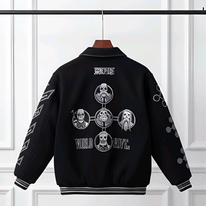 VARSITY JACKET ONE PIECE GOROSEI HITAM BLACKSEVEN WORLD GOVT JAKET BASEBALL BORDIR ORIGINAL UNISEX