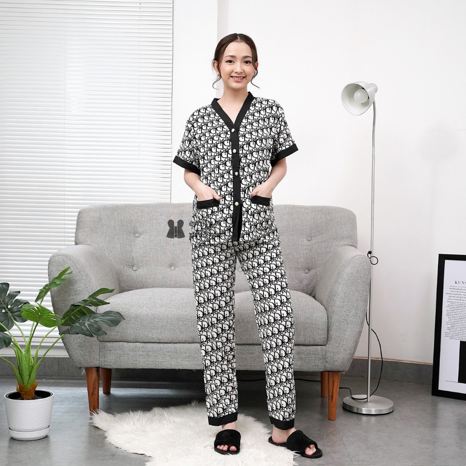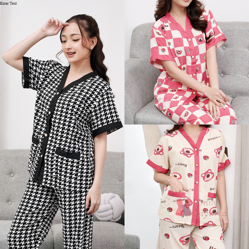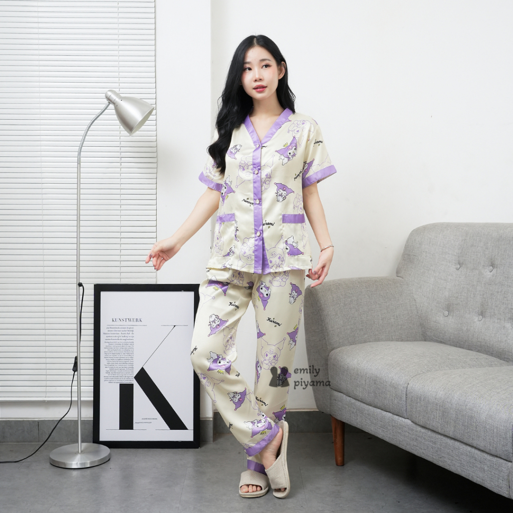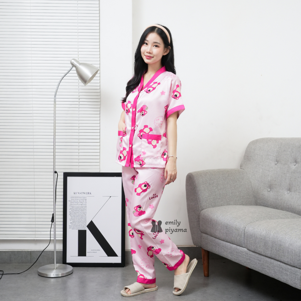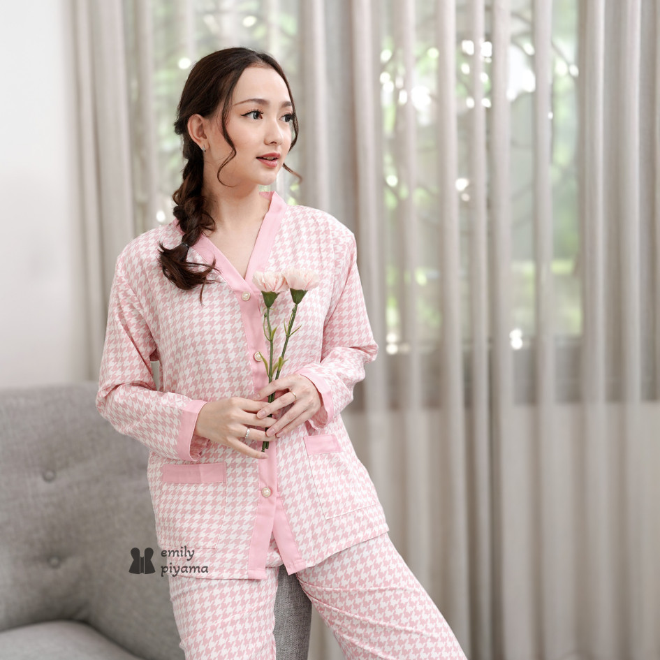 Baju Pajamas Wanita Emily Baju Tidur Set Model Kancing Depan Premium Pakaian Tidur Wanita Dewasa