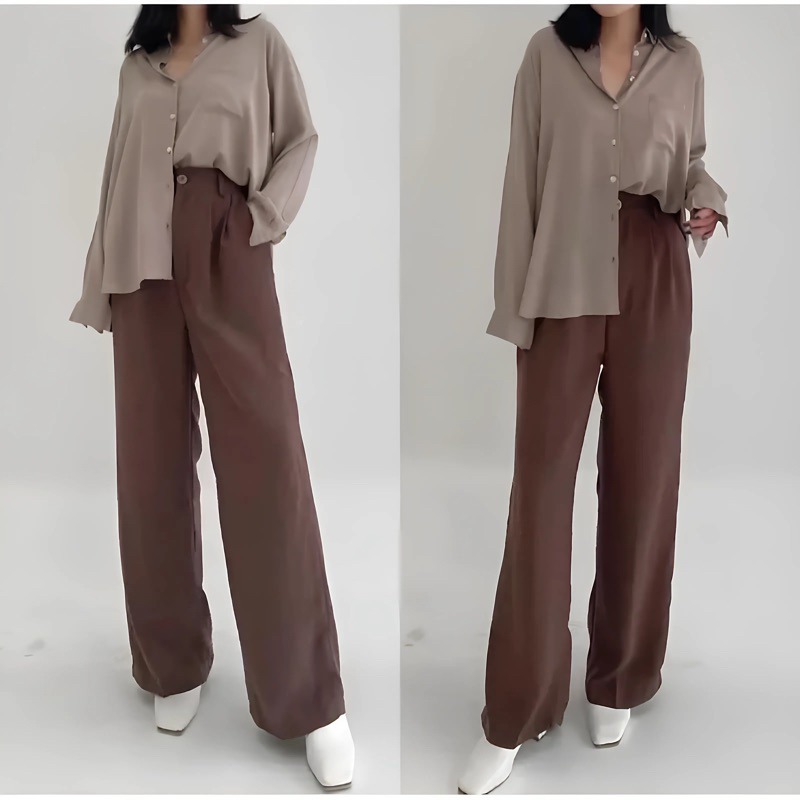 Loose Pants Trousers - Celana Kulot Anti Kusut Premium - Celana Kulot Wanita - Celana Wanita Highwaist - Celana Panjang