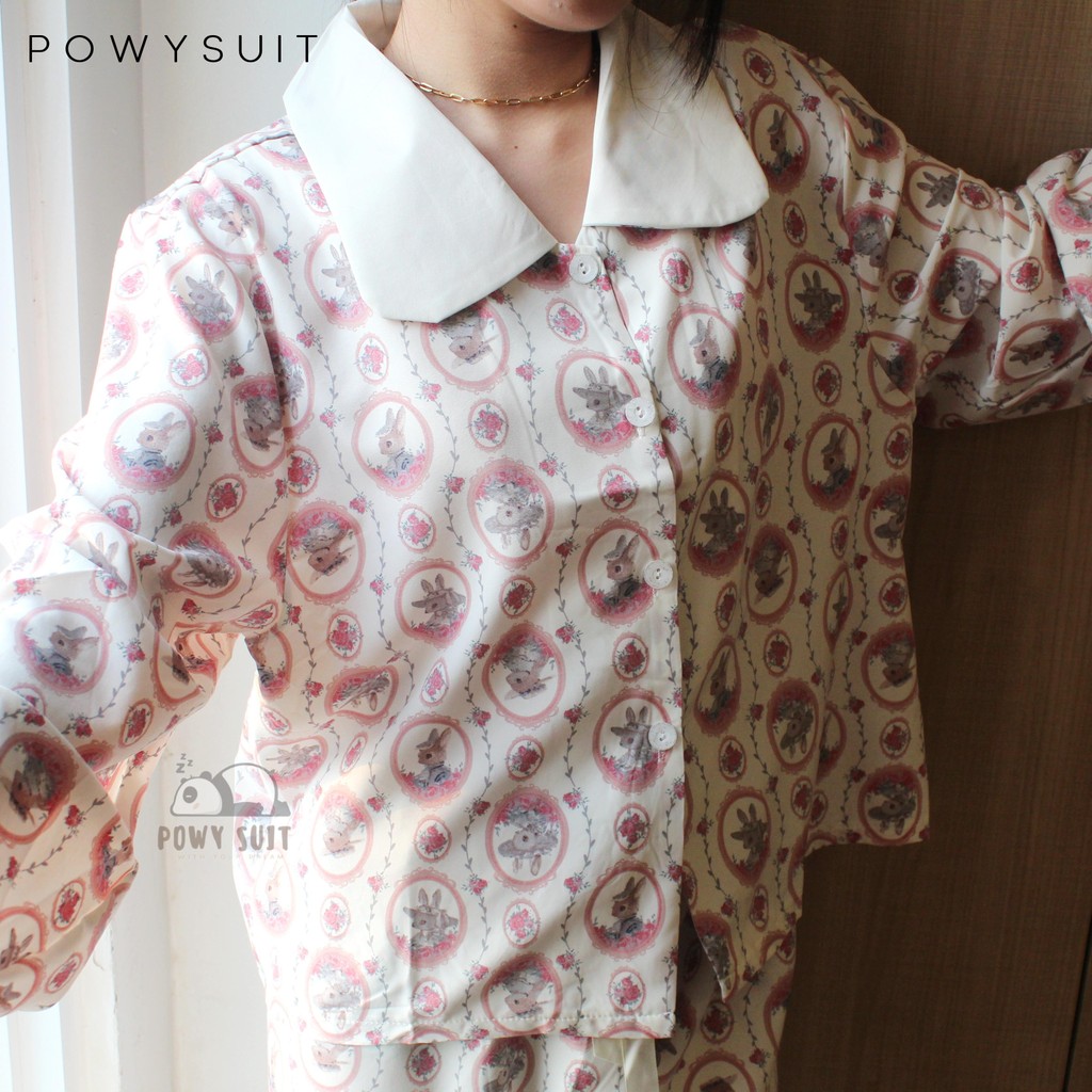 Setelan Baju Tidur Yx64 Rabbit Piyama Powysuit Satin Sutra Wanita Setelan Lengan Panjang Celana Panjang Lembut Dewasa