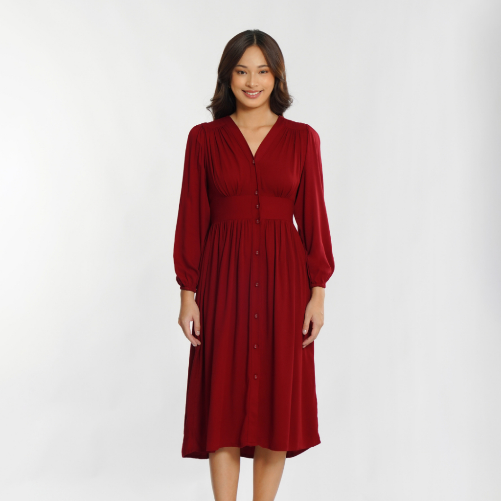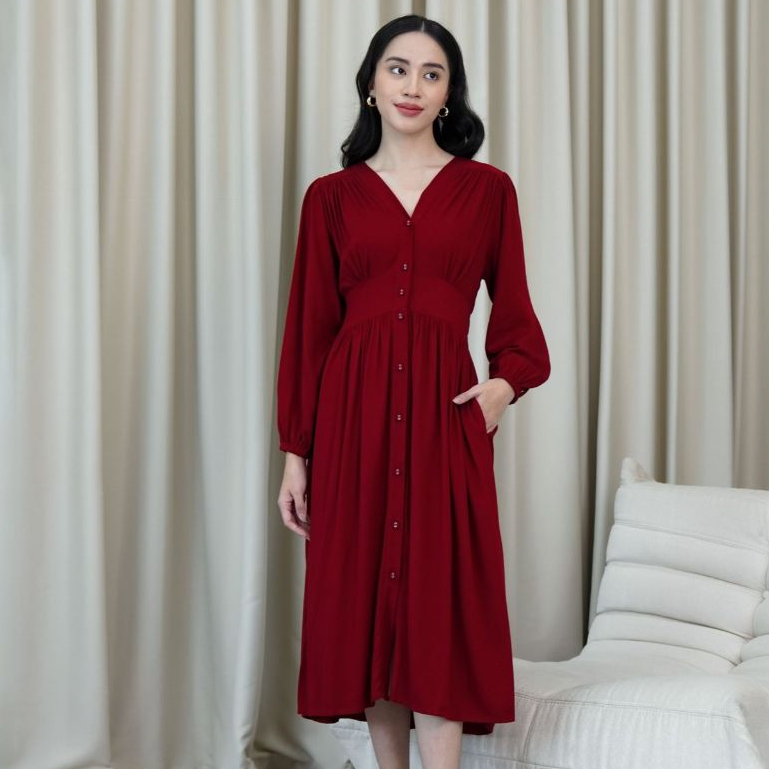 Midi Dress Wanita Momelca Jollie Rayon Twill Midi Dress Wanita
