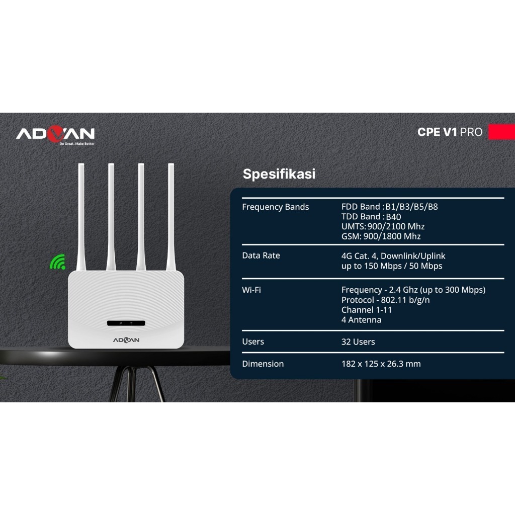 ADVAN CPE V1 Pro Modem + Wifi + Router + 4G LTE unlock all operator