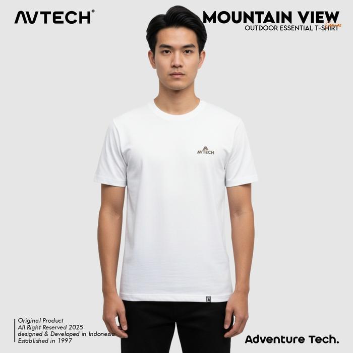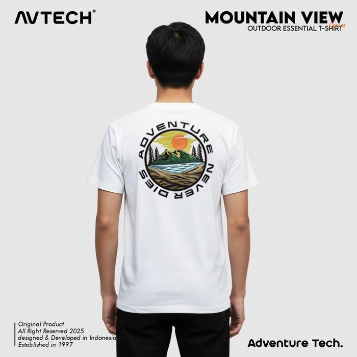 AVTECH - T-SHIRT KAOS PRIA WANITA LENGAN PENDEK OUTDOOR CASUAL HARIAN COTTON COMBED - MOUNTAIN VIEW - PUTIH, M