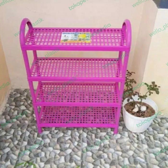 RAK SEPATU SUSUN 3 & 4 BAHAN PLASTIK - MERAH MUDA, SUSUN 4