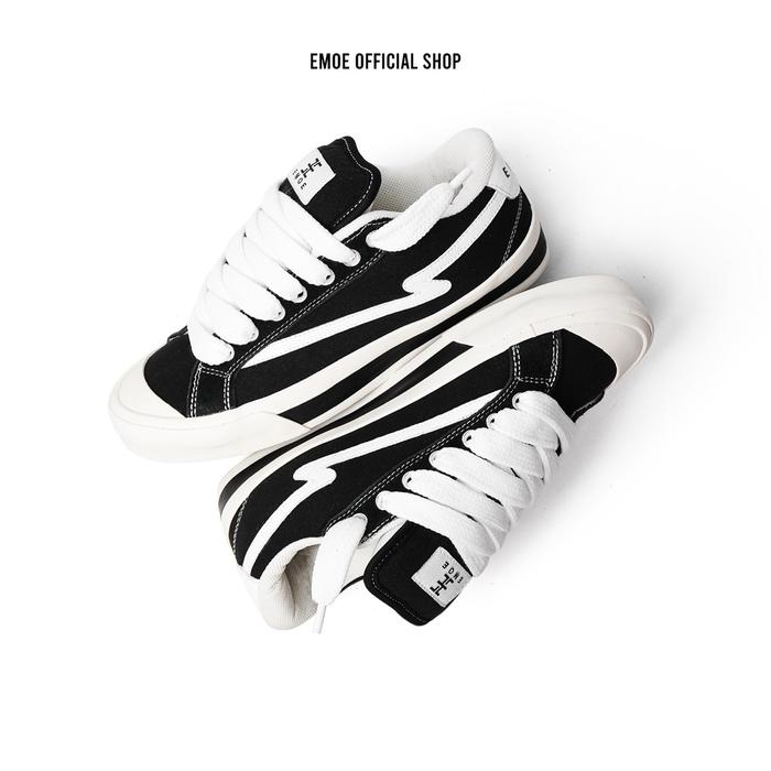 EMOE - BUBBLE-BW SNEAKERS PRIA WANITA SEPATU CASUAL HITAM PUTIH ELEGAN SHOES KARET SHOES KARET - BUBBLE-BW, 36