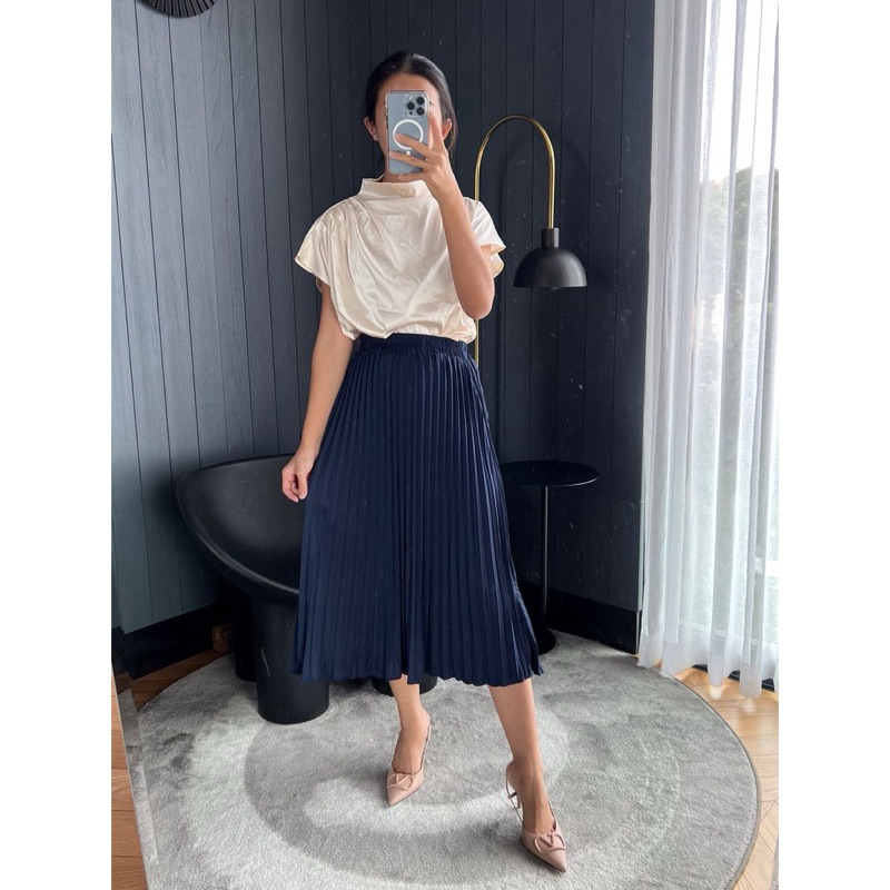 Rok Plisket Midi Wanita Plisket Premium Pleated Skirt Tebal Tidak Terawang