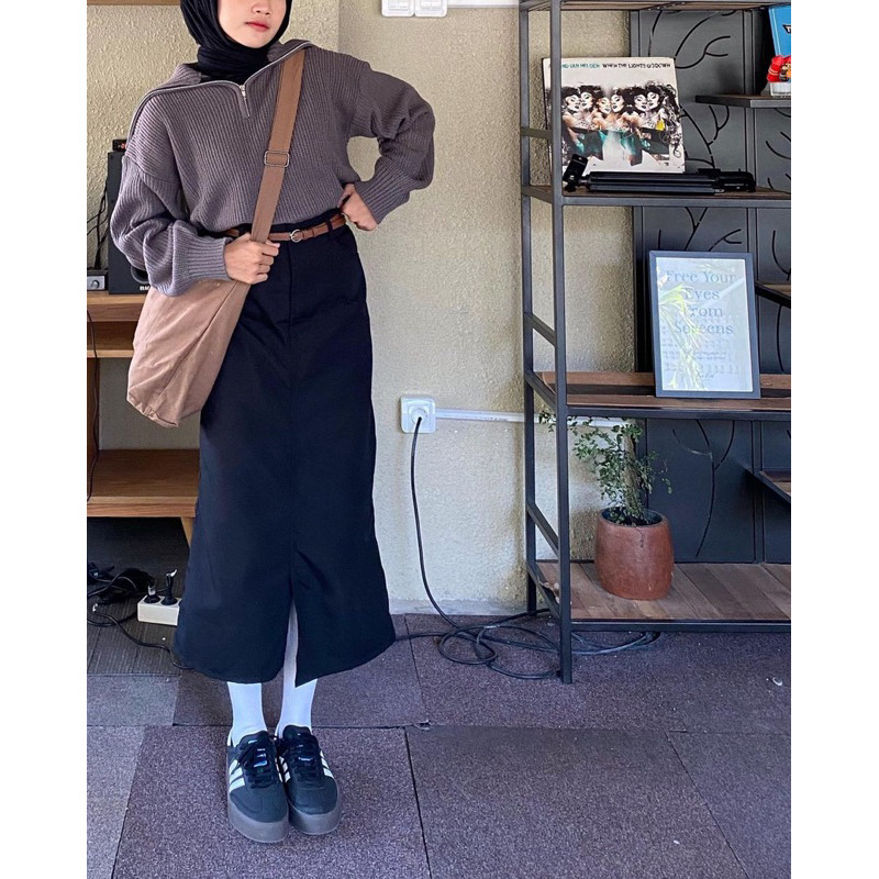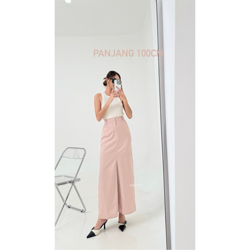 Rok Midi Wanita Hl Hana Korean Midi Skirt Y2K (L Series)