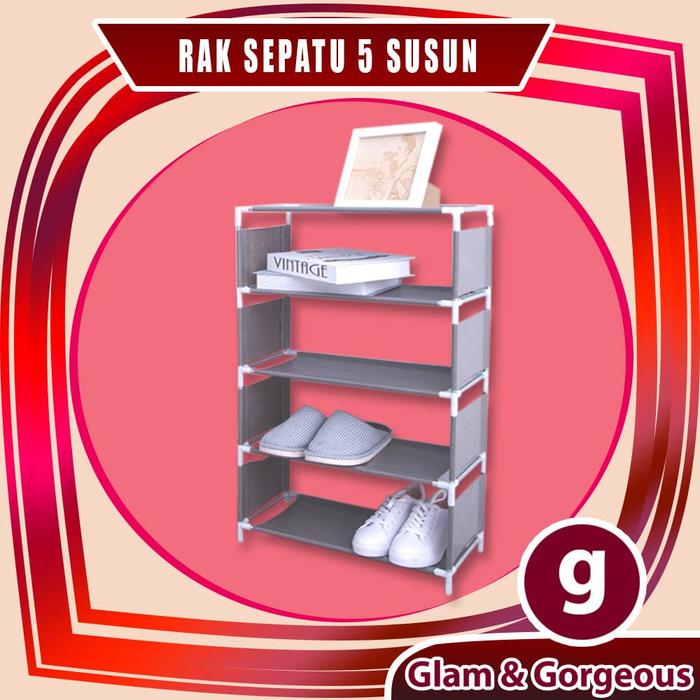 RAK SEPATU RTABLE SUSUN 5 RANGKA BESI RS016 MURAH KUAT PRAKTIS - BER BIRU