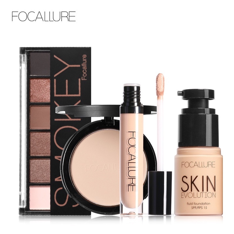 Focallure Makeup Set 4Pcs Eyeshadow, Face Foundation, Concealer, Loose Powder