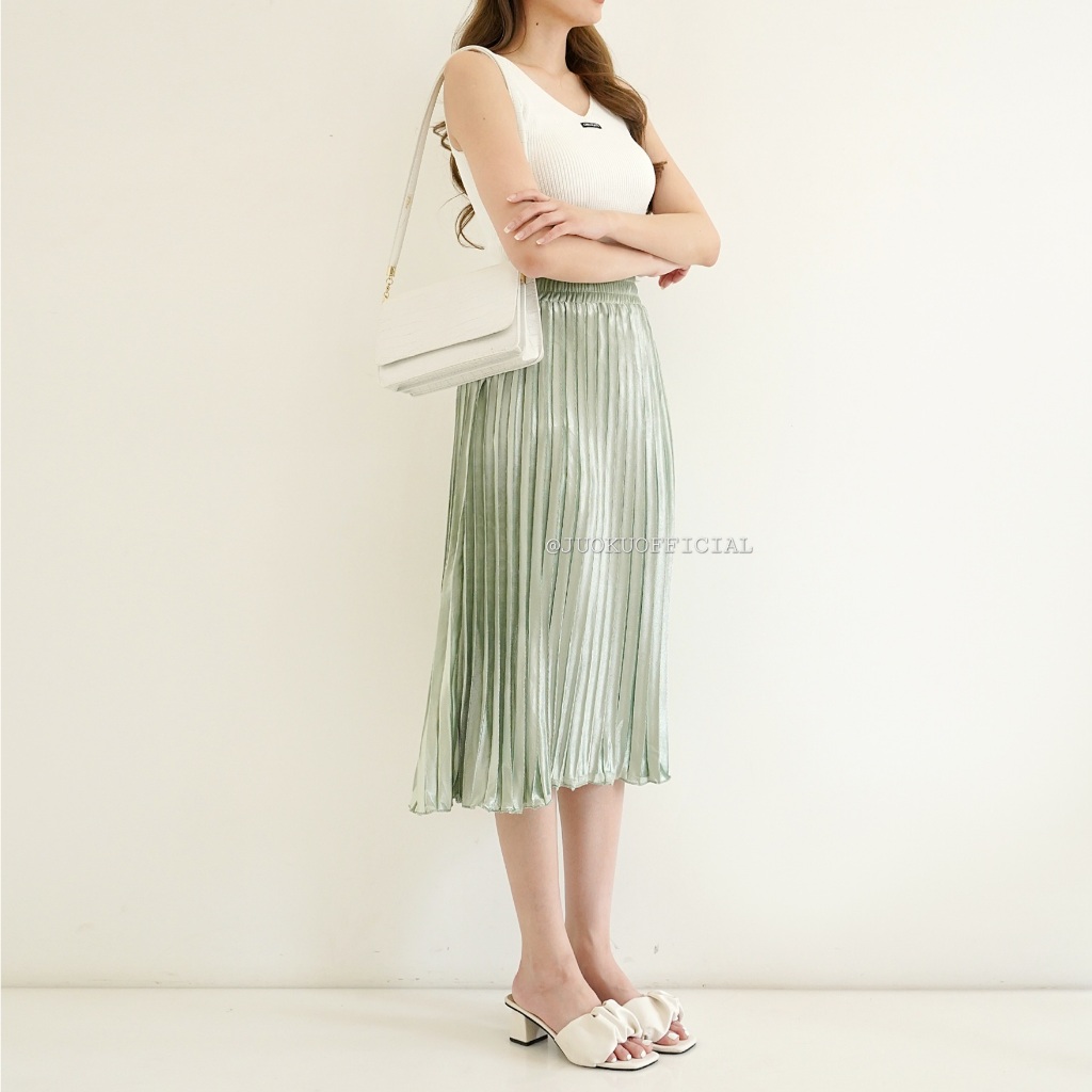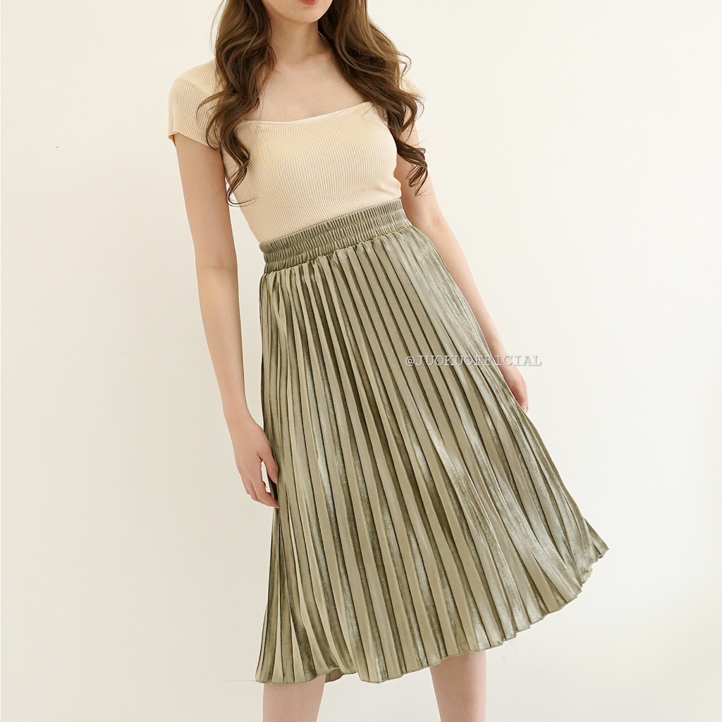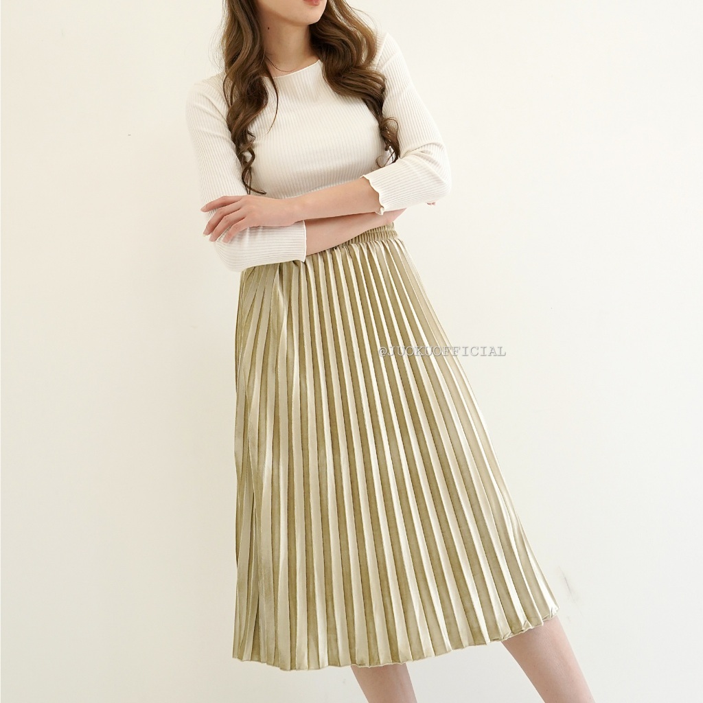 Rok Midi Plisket Bludru Premium Pleated Skirt Bawahan Wanita Anggun Elegant