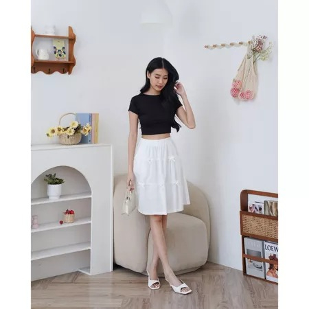 Rok Midi Ruffle Wanita Rf Xena Skirt Ribbon Bawahan Cewek Lucu Kekinian