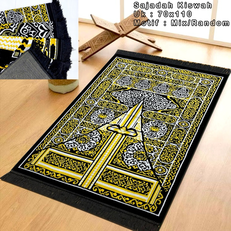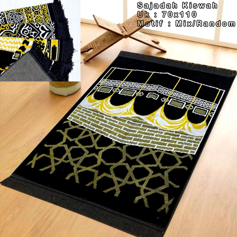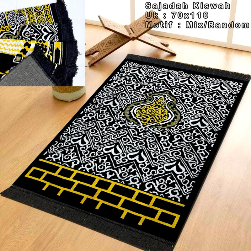 Promo 3 Pcs Sajadah Turkey Hitam- Sajadah Kiswah Raudah Uk 70x110 cm by Almeera moslem
