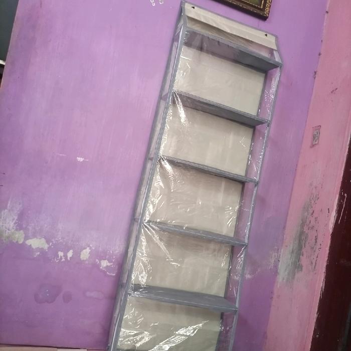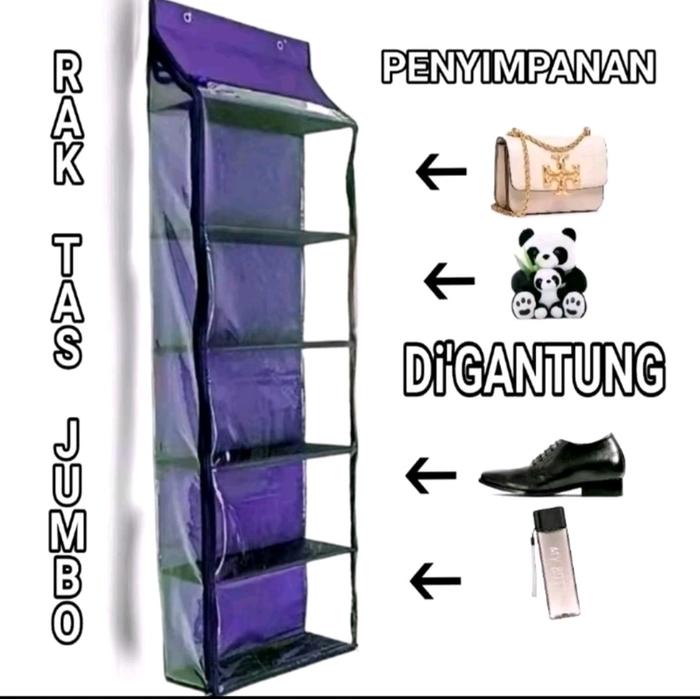 RAK TAS 5 KOLOM RAK TAS GANTUNG ALAS TRIPLEK PAKAI RESLETING KANAN KIRI UKURAN JUMBO HITAM PINK - HITAM