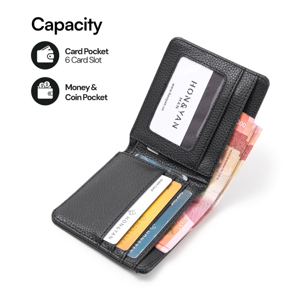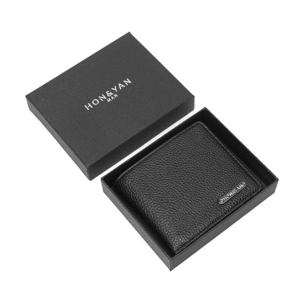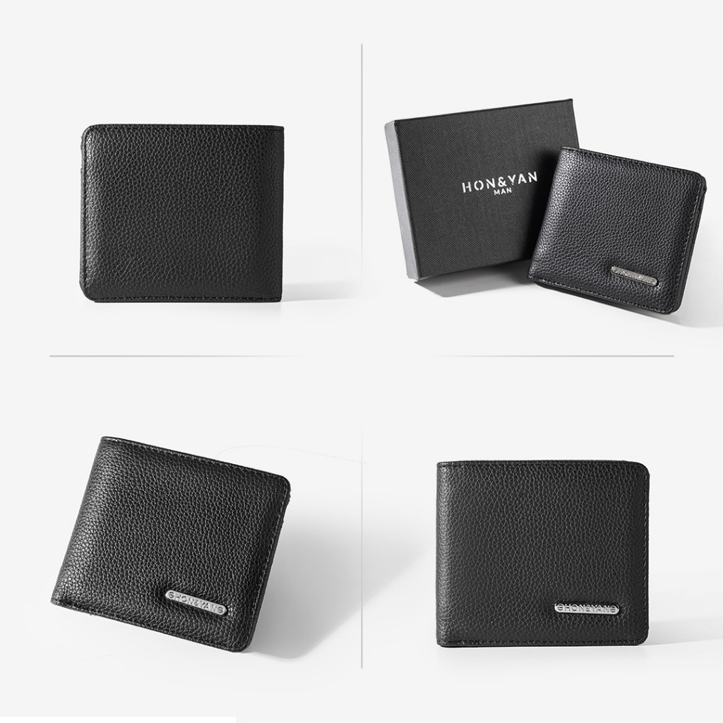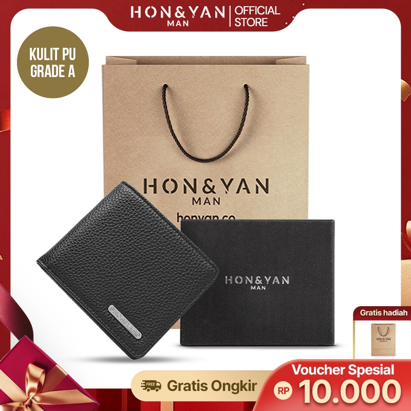 Dompet Lipat Pria Honyan Man Rei Short Wallet Kulit Sintetis Hitam Terbaru Original