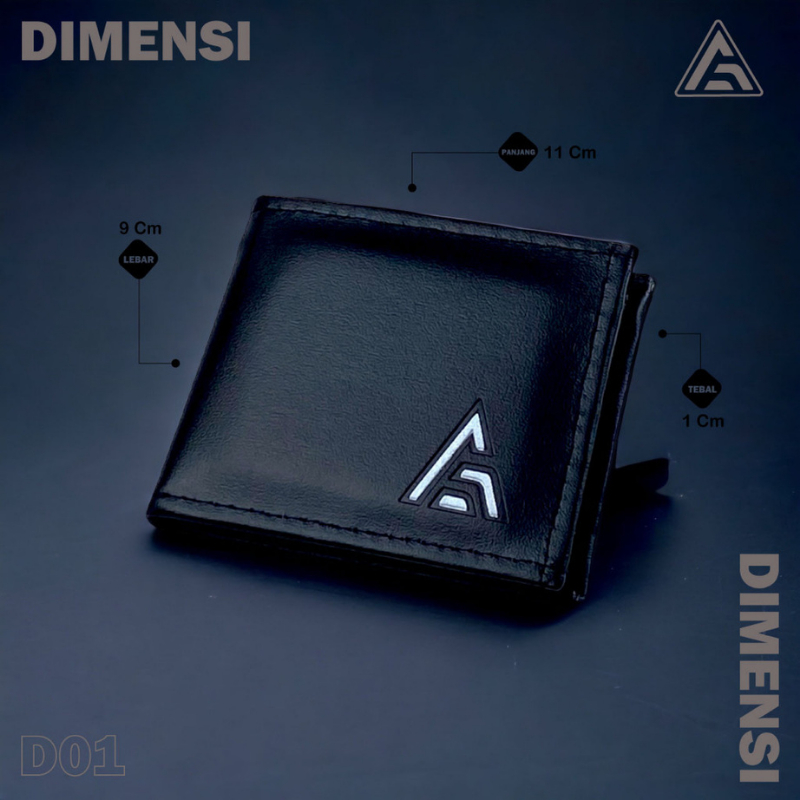 Dompet Pria Lipat Wibi Aflah D01 Bahan Kulit Sintetis Premium Kuqala Warna Hitam