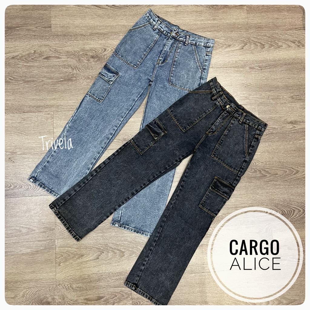 TRIVELA - Celana Jeans Loose Alice Cargo - Celana Jeans Cargo Kantong Tempel Nonstretch Highquality Realpic - CARLICE