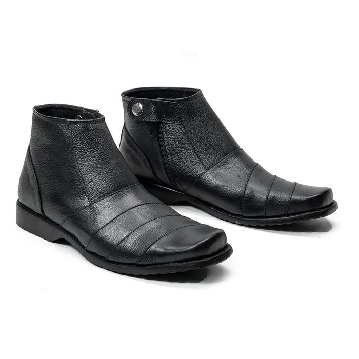 Sepatu Boot Pria Formal Resleting Kulit Asli Kerja Kantoran PDH Security Warna Hitam BOOTS02