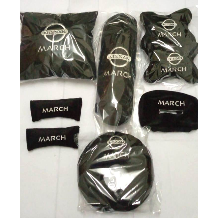 Car set 6 in 1 bantal mobil Nissan March aksesoris variasi interior headrest alas jok sandaran kepala custom