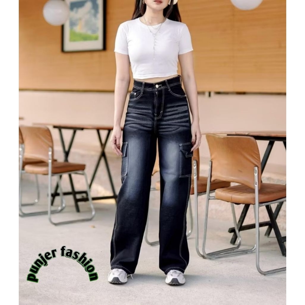 HighWaist Cargo Jeans Baggy Loose Wanita // Cargo Jeans Retro highwaist