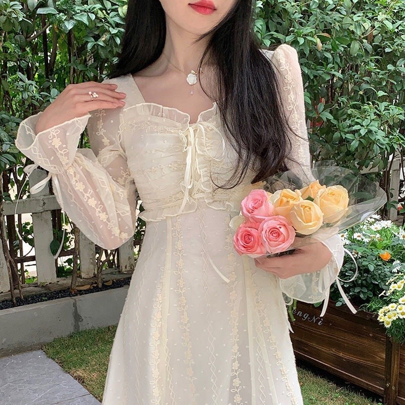 Dress Wanita Gaun Full Bordir Bunga Model Dress Vintage Dress Kondangan M367