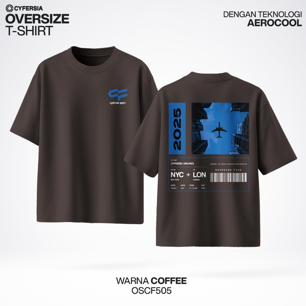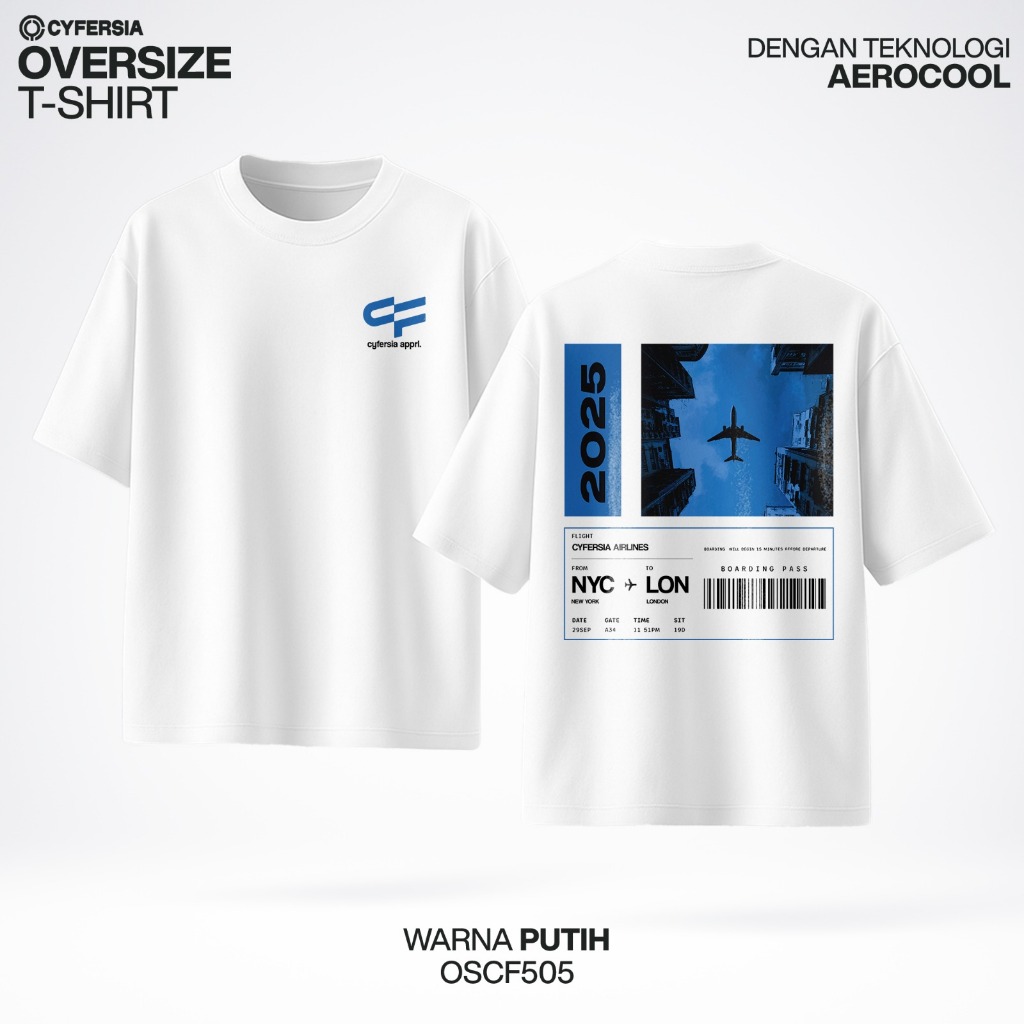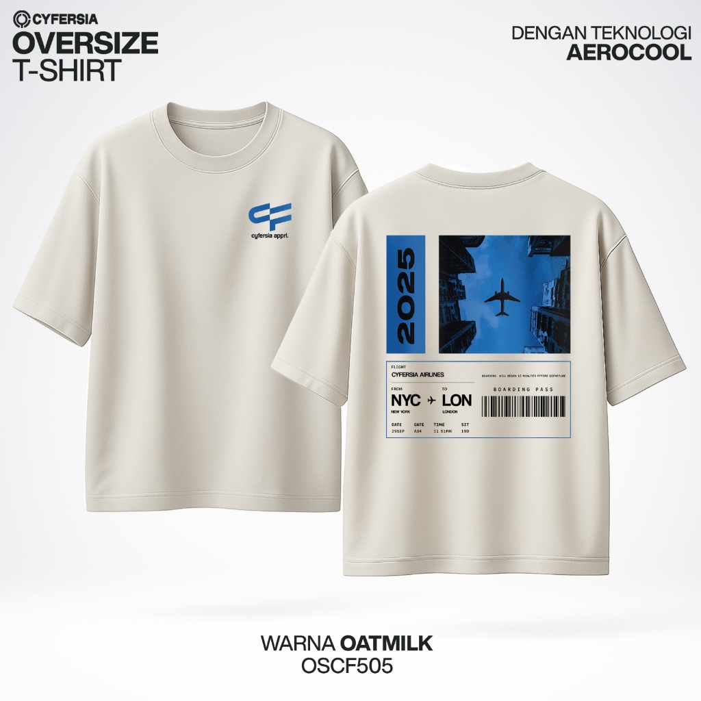 Cyfersia Kaos Oversize Heavyweight 16S Tebal Oscf505 Plane Ticket Kaos Jumbo Pria Wanita