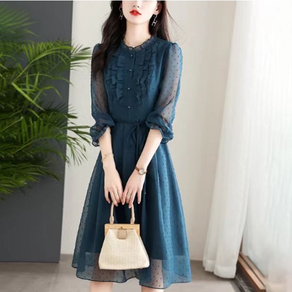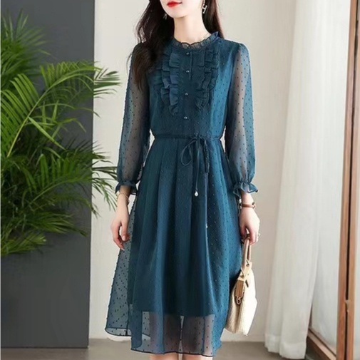 Dress Wanita Fashion Baru Gaun Sifon Ramping Korea Dress Chiffon