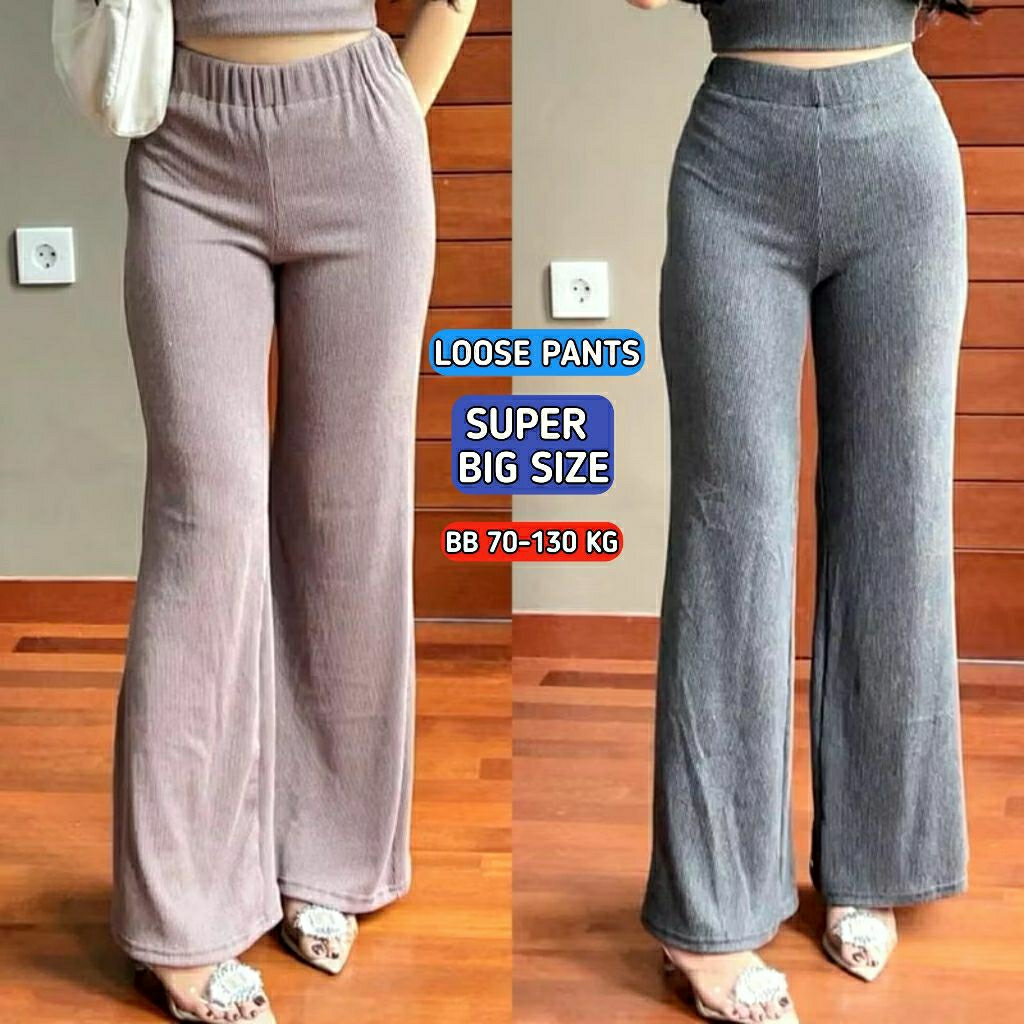 LOOSE PANTS SUPER JUMBO Celana Panjang Wanita Rib knit Premium Super Jumbo BB 60-130 KG Big size Kulot Rib knit Premium