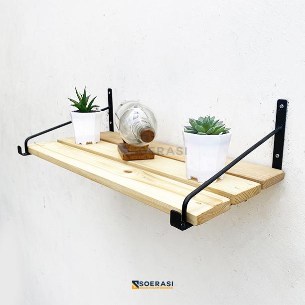 LADIN RAK BUKU DINDING BESI DAN KAYU MINIMALIS VINTAGE KUNO ES SEPATU - COKELAT, 30CM