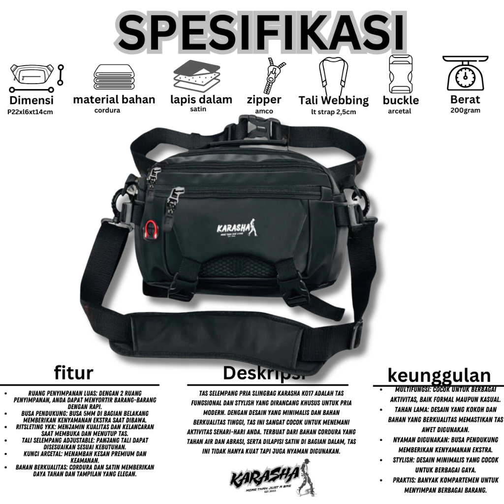 Tas Selempang Terbaru Karasha K016 Tas Waistbag Tas Pinggang Pria Wanita Multi Pungsi