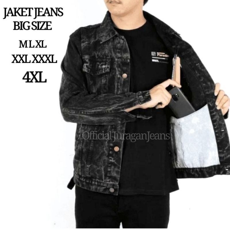 Jaket Jeans Denim Jumbo Big Size M L Xl Xxl Xxxl 4Xl 5Xl 6Xl Bahan Premium Original Sanwash Black Grey Maroon Hijau Abu