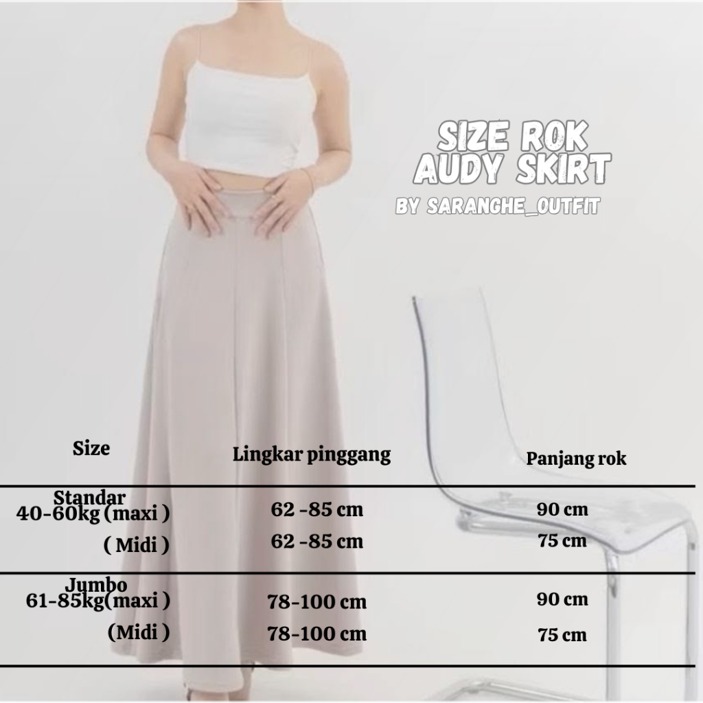 Rok Panjang Wanita Audy Midi Skirt Korean 7/8 Rok Wanita Anti Kusut Rok Casual Simple