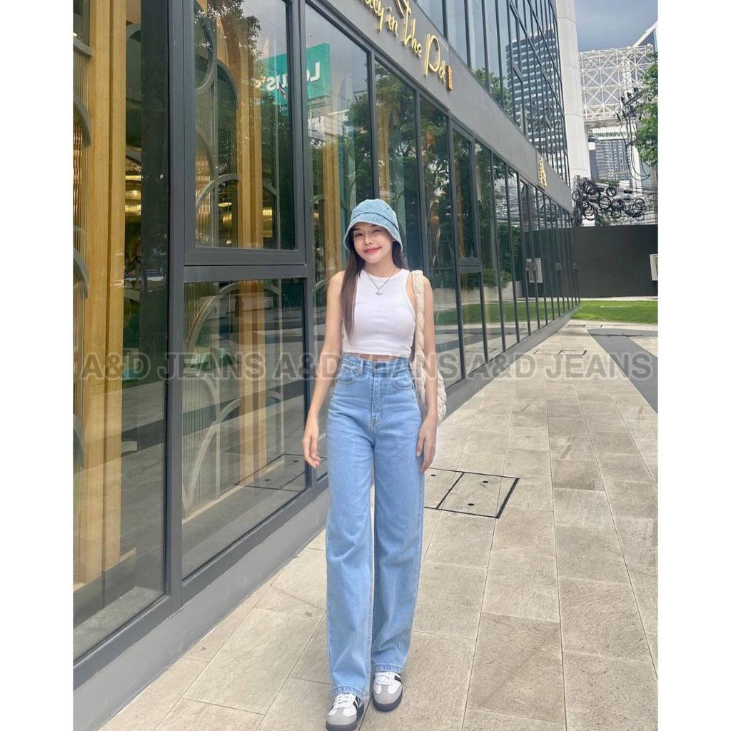 Highwaits Loose Adjustable Baggy Under Age Jeans Celana Jeans Wanita Kekinian Jeans Loose Straight