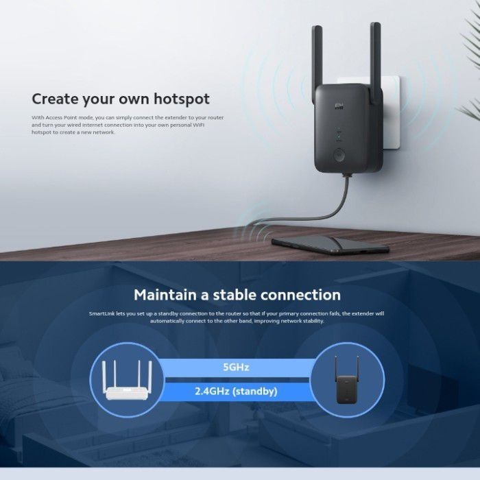 Wifi Repeater / Extender AC1200 - 5G Gigabit - Speed up to 1200mbps