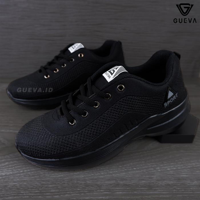 GUEVA SEPATU SEKOLAH HITAM LOS NEW SRT SD SMP SMA SMK KULIAH SEPATU LARI HITAM SEPATU JOGGING OUTDOOR MURAH RUNNING - HITAM FULL, 36