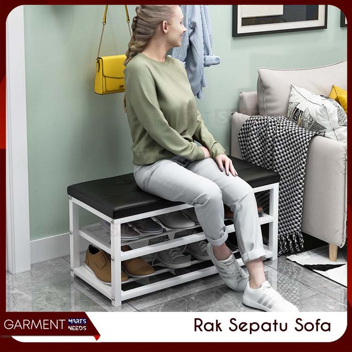 RAK SEPATU DUDUK SOFA BESI TEMPAT PAKAI SANDAL R TAMU KOKOH KUAT - 50 CM