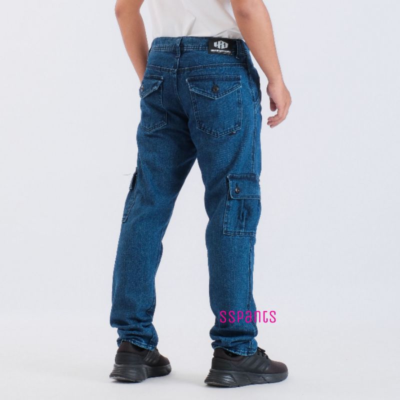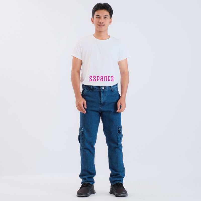 Celana Cargo Panjang Jeans Pria Reguler Standar Korean Style Snow black Model Kargo Terbaru 27-38