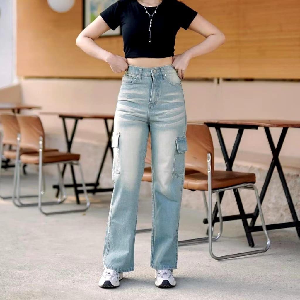 HIGHWAIST BAGGY CARGO JEANS LOOSE WANITA | CELANA CARGO JEANS LOOSE UNISEX