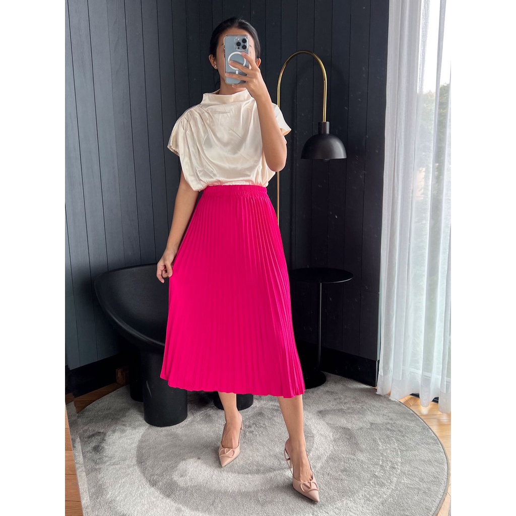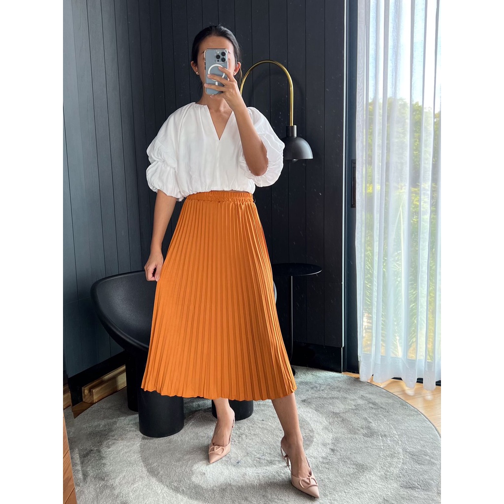 Rok Plisket Midi Wanita Rok Plisket Tanggung 7/8 Bahan Tebal Premium