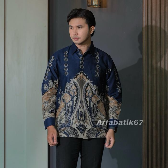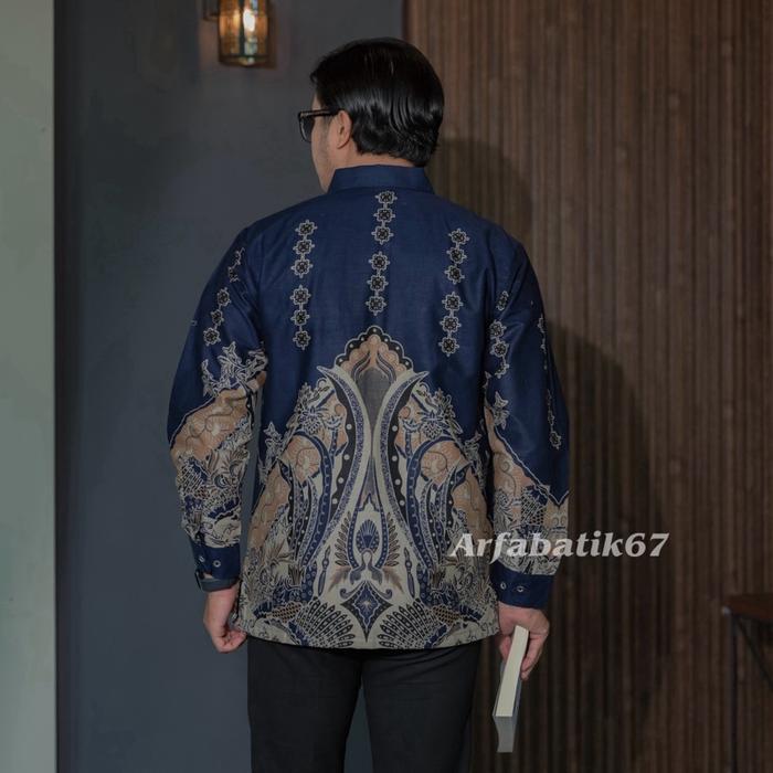 GUNUNGAN NAVY Kemeja batik katun pria tangan panjang dan tangan pendek lapis furing hero