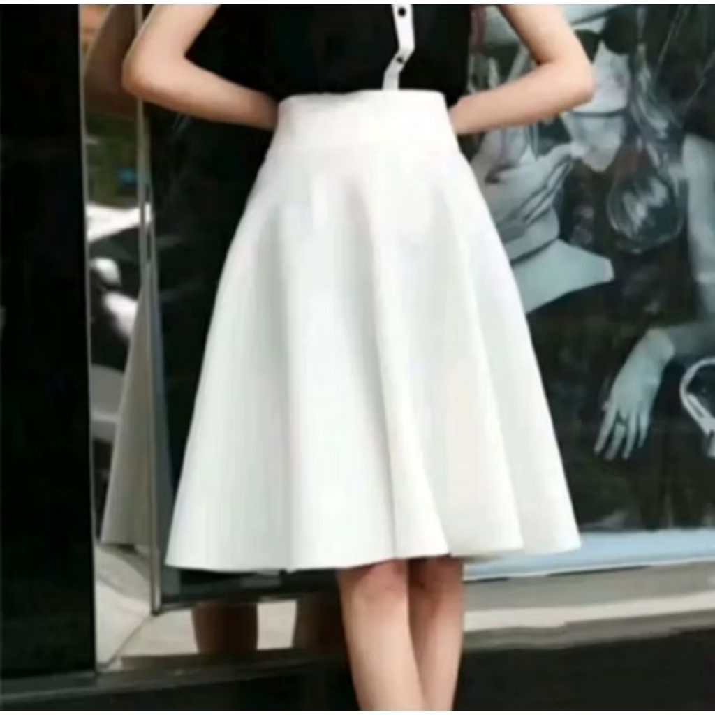 Rok Scuba Wanita Short Flare Rok Midi Bahan Tebal Adem Premium