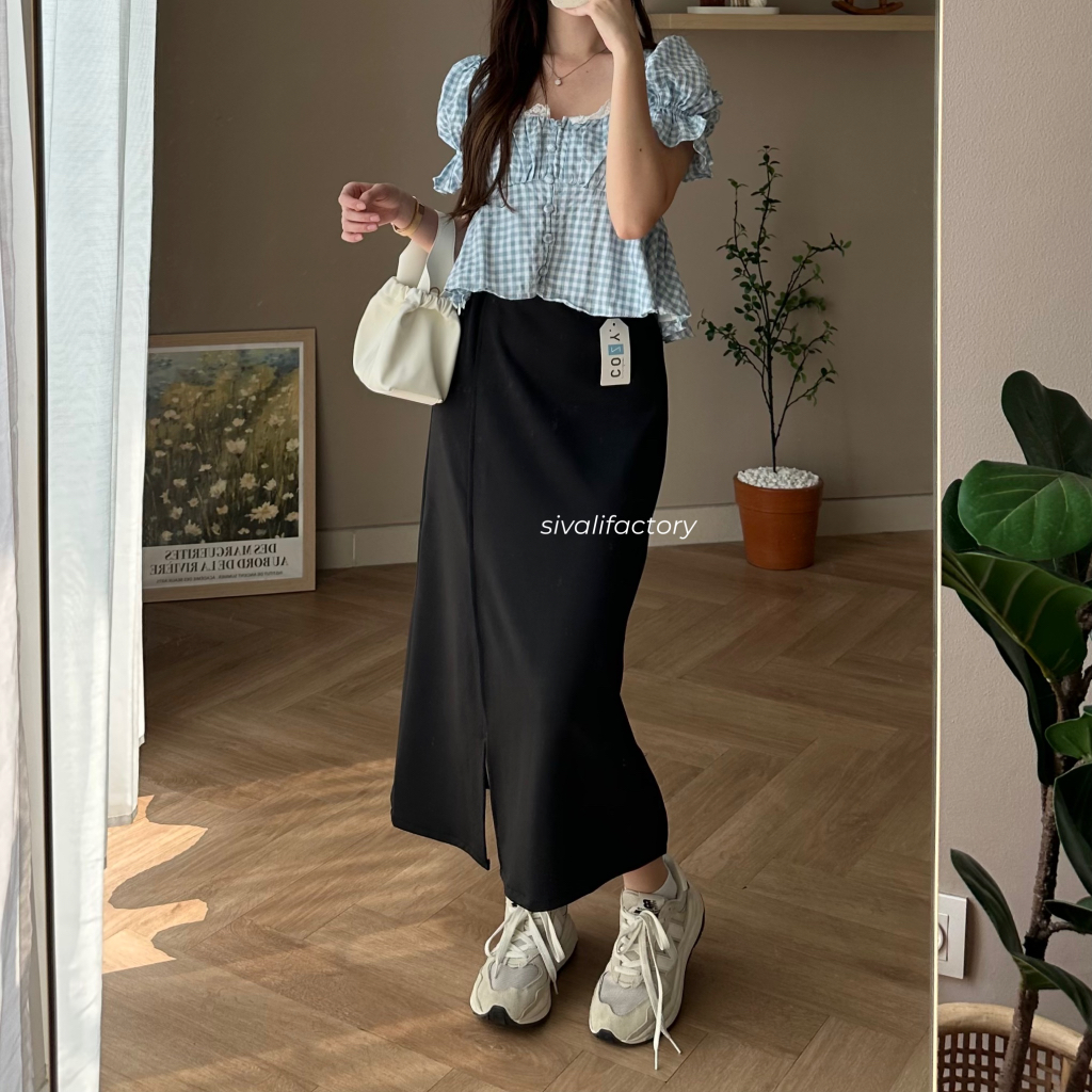 Rok Wanita Midi Slit Anti Kusut Sivali Yoon Skirt Korean Loose Skirt Rok Wanita