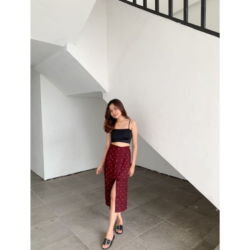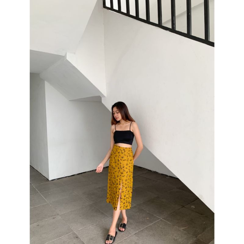 Rok Midi Belah Samping Korean Print Bunga-Bunga Cantik Elegant