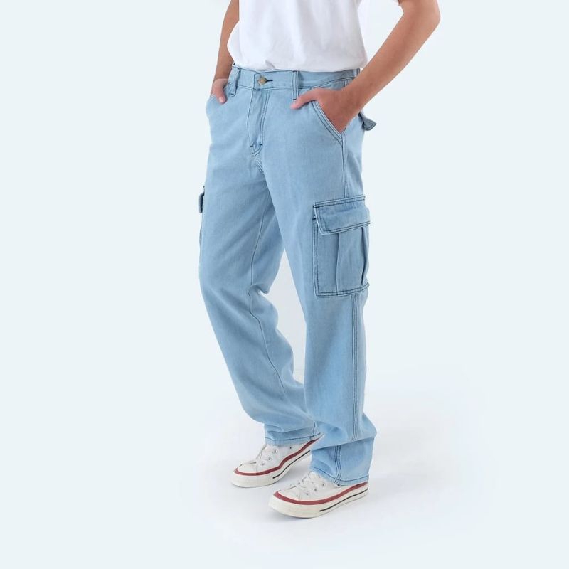 Cargo Panjang Jeans Pria Cargo Pants Cowok Warna Abu Snow Hitam Blits Stun Hitam Size 27-38 Bahan Denim Terbaru