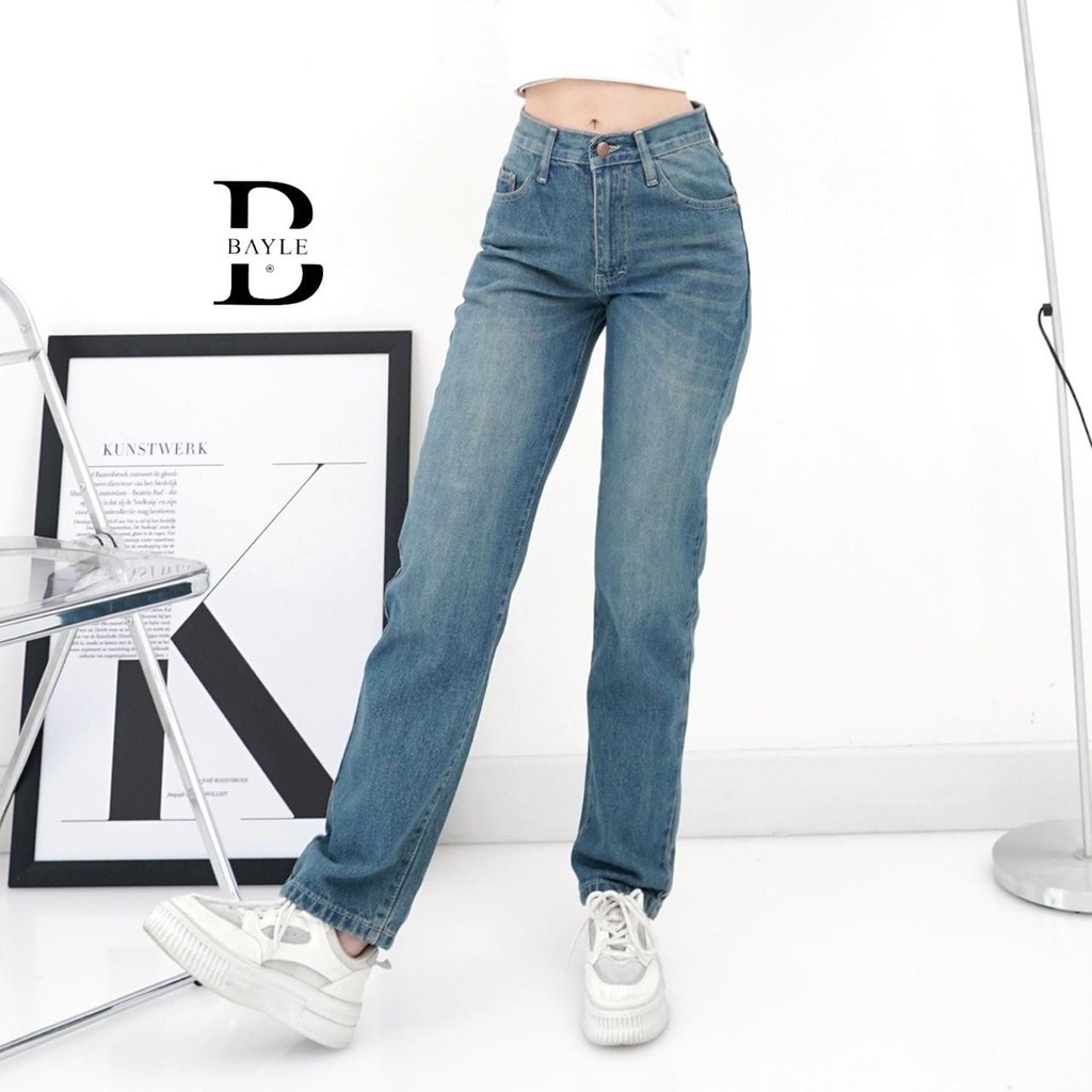 [BAYLE] - 1019 BF JEANS | Celana Jeans Wanita Jeans Boyfriend Jeans Biru Retro Jeans Loose Jeans